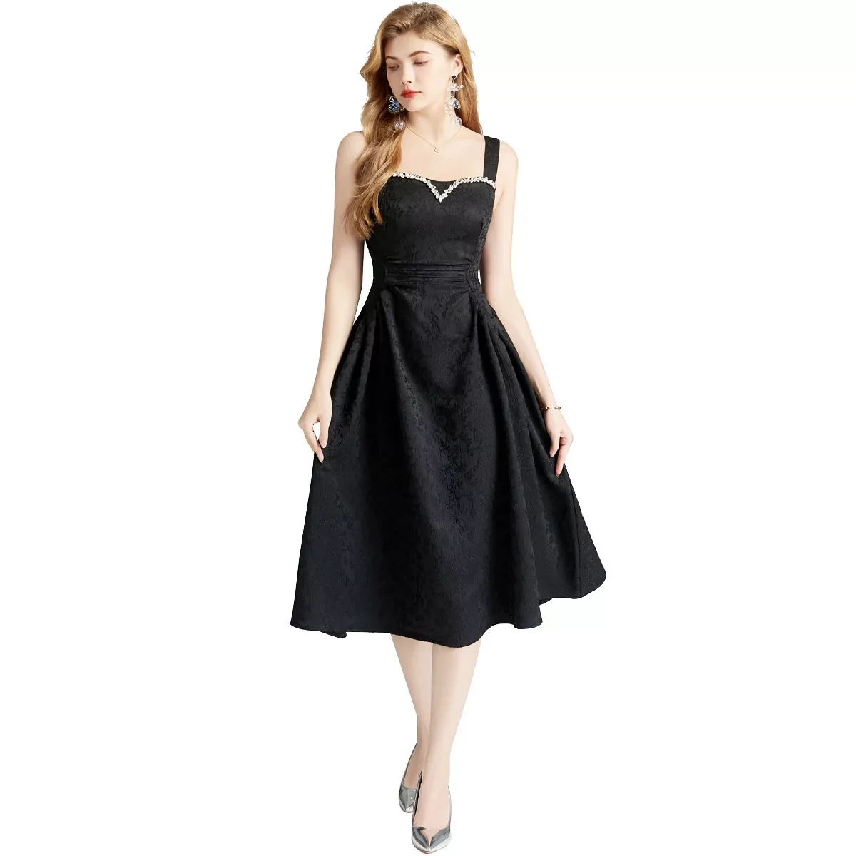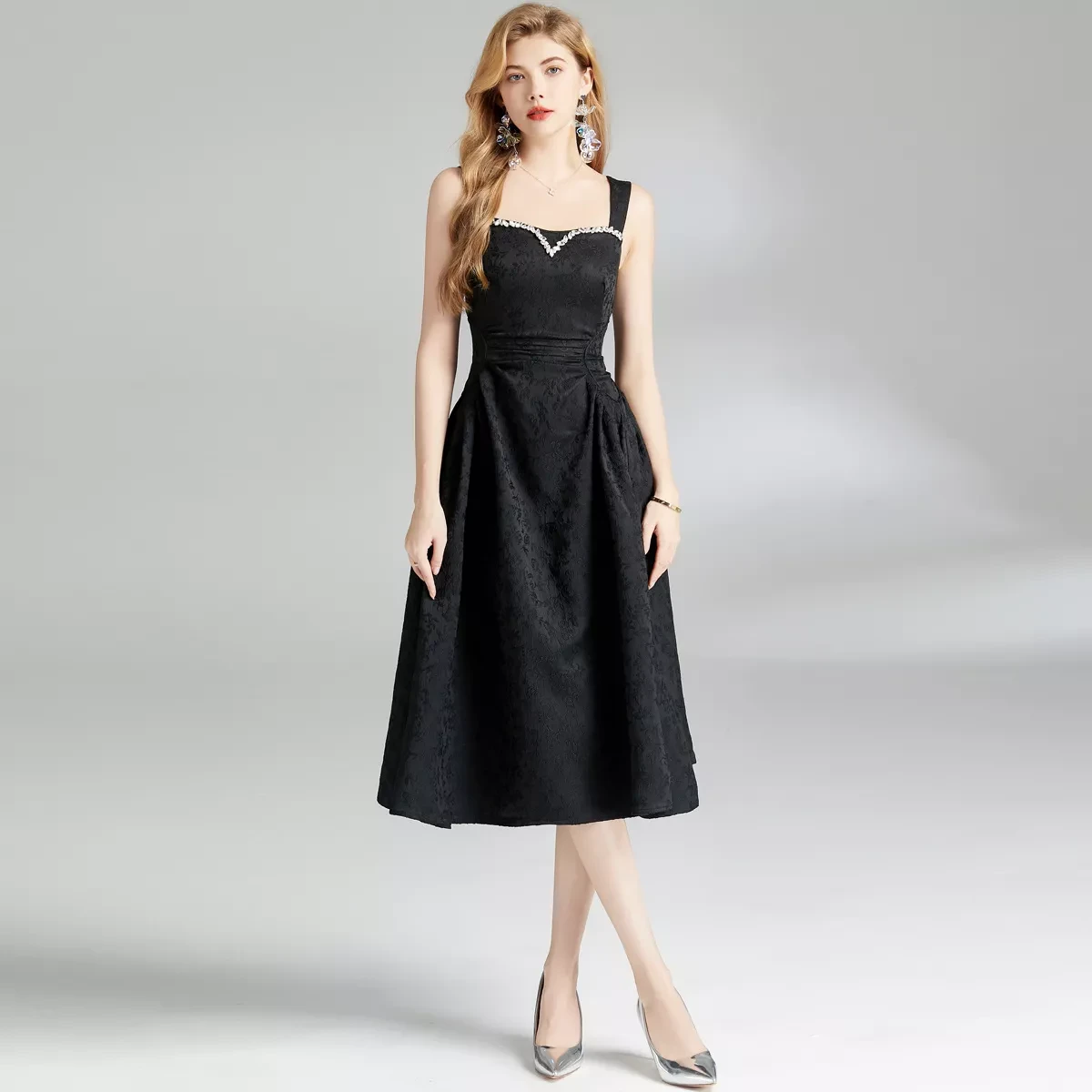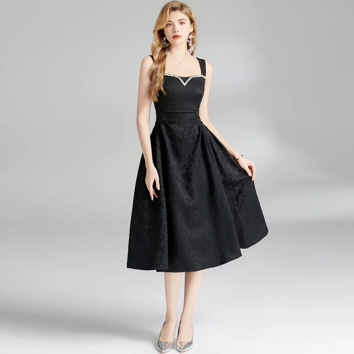 Embody the timeless elegance of Parisian chic with a touch of modern artistry in our Handmade Rhinestone French Dress. This exquisite piece is a love letter to "Art Retro" style, masterfully blending classic French sophistication with intricate, eye-catching detail. Designed to sculpt and flatter, this dress is your passport to looking impeccably stylish at any upscale event.