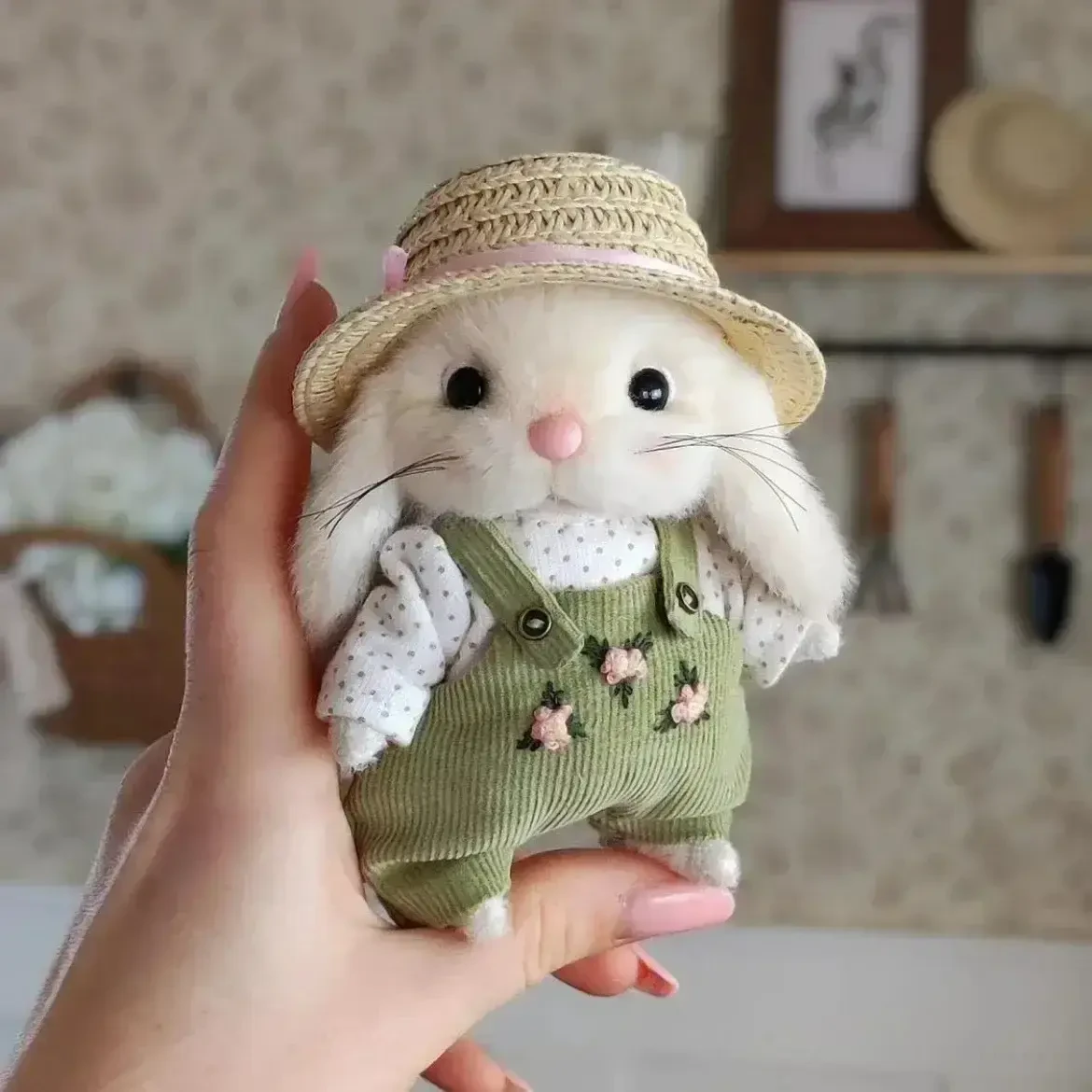 Finished product, popular cute teddy bunny 14cm rabbit gardener girl holiday gift, soft and playable