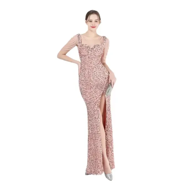 - *Length:* A long dress that reaches the floor, perfect for an elegant and attractive look.