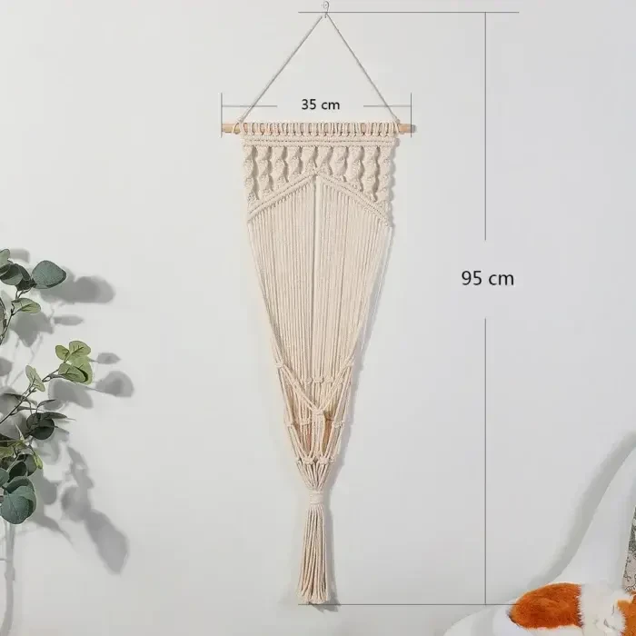 This handwoven hanging macrame adds a touch of elegance and warmth to any space. Weighing 360 grams, this unique piece has been carefully crafted to combine beauty with high quality.