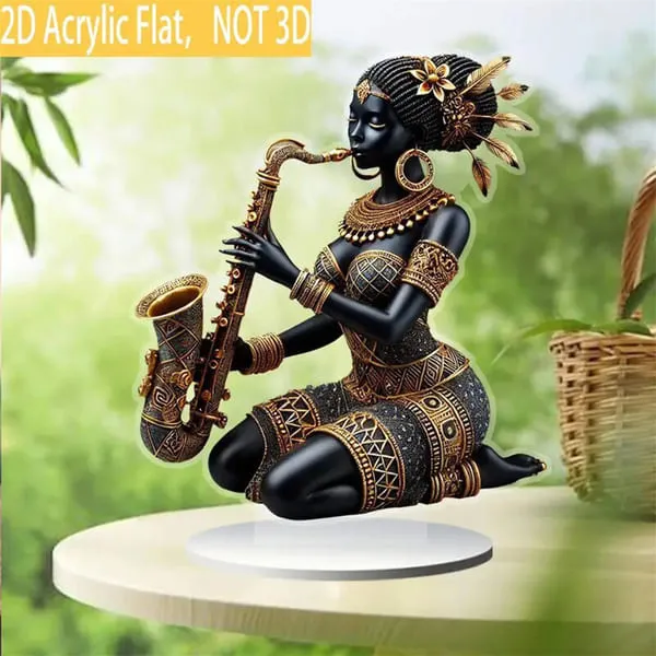 depiction of a tribal lady lost in the melody of her saxophone. Expertly